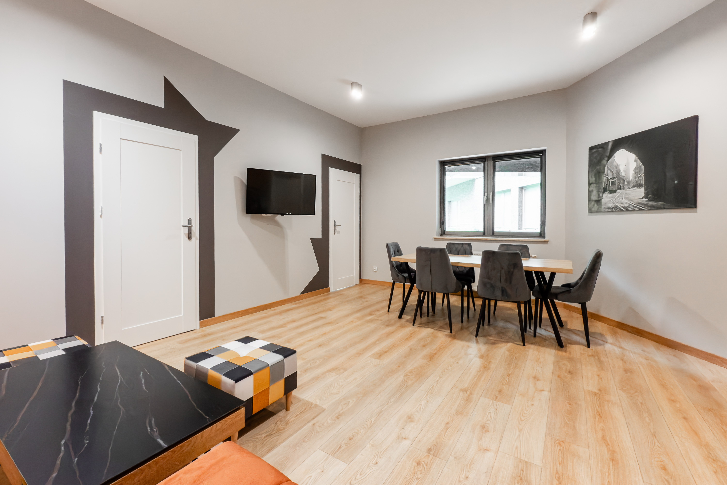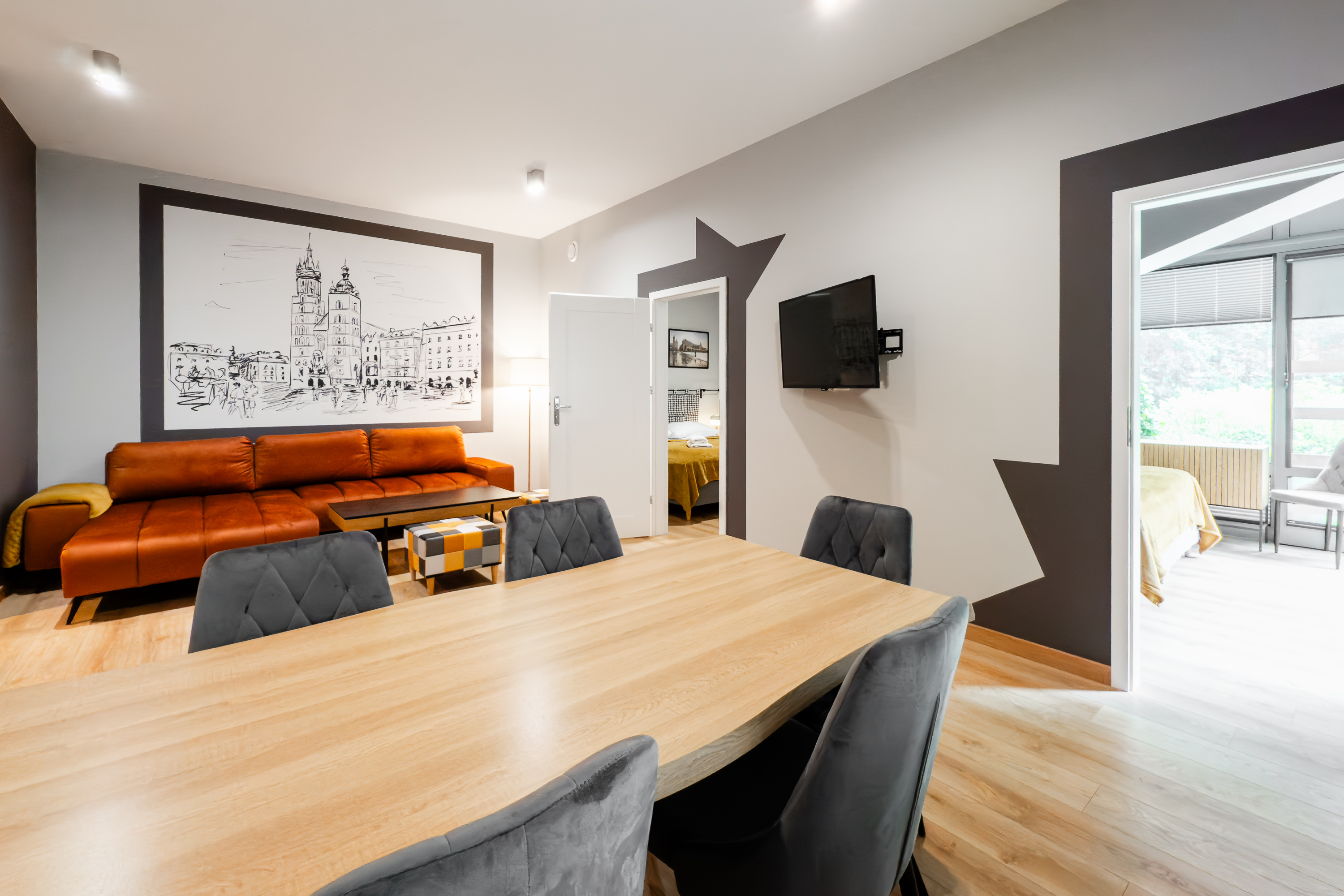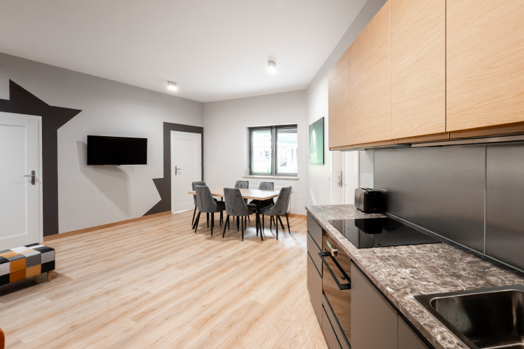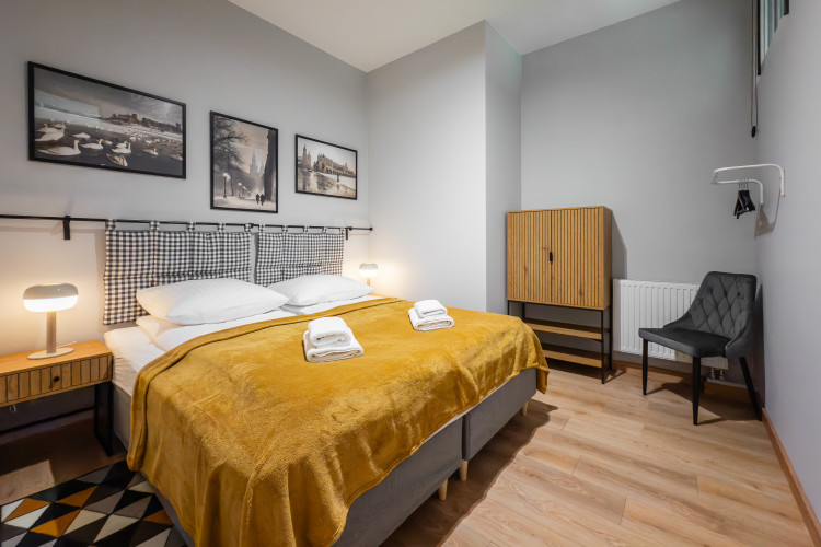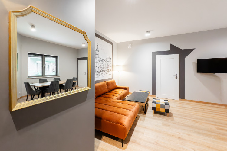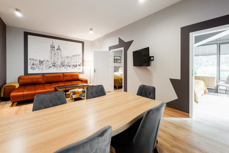 APARTAMENT KREMER 5 to nowoczesny przestronny apartament w CENTRUM Krakowa.W skład apartamentu wchodzi duży salon z częścią jadalną i aneksem kuchennym, DWIE duże sypialnie, łazienka, wc. Wnętrze urządzono ze starannością o najmniejsze szczegóły.